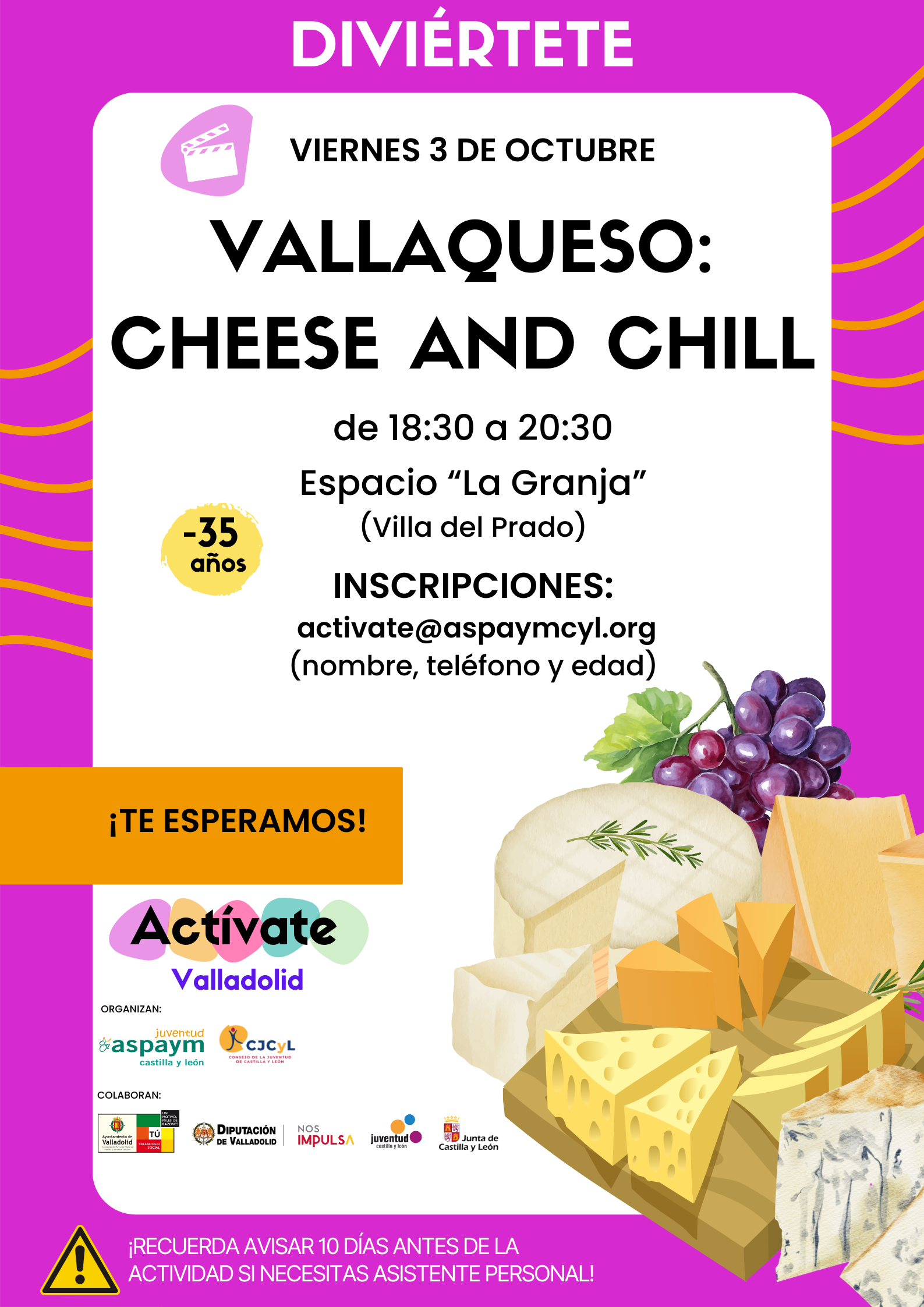 VALLAQUESO: CHEESE & CHILL | Viernes 3 de octubre, de 18:30 a 20:30 horas | Espacio La Granja.
