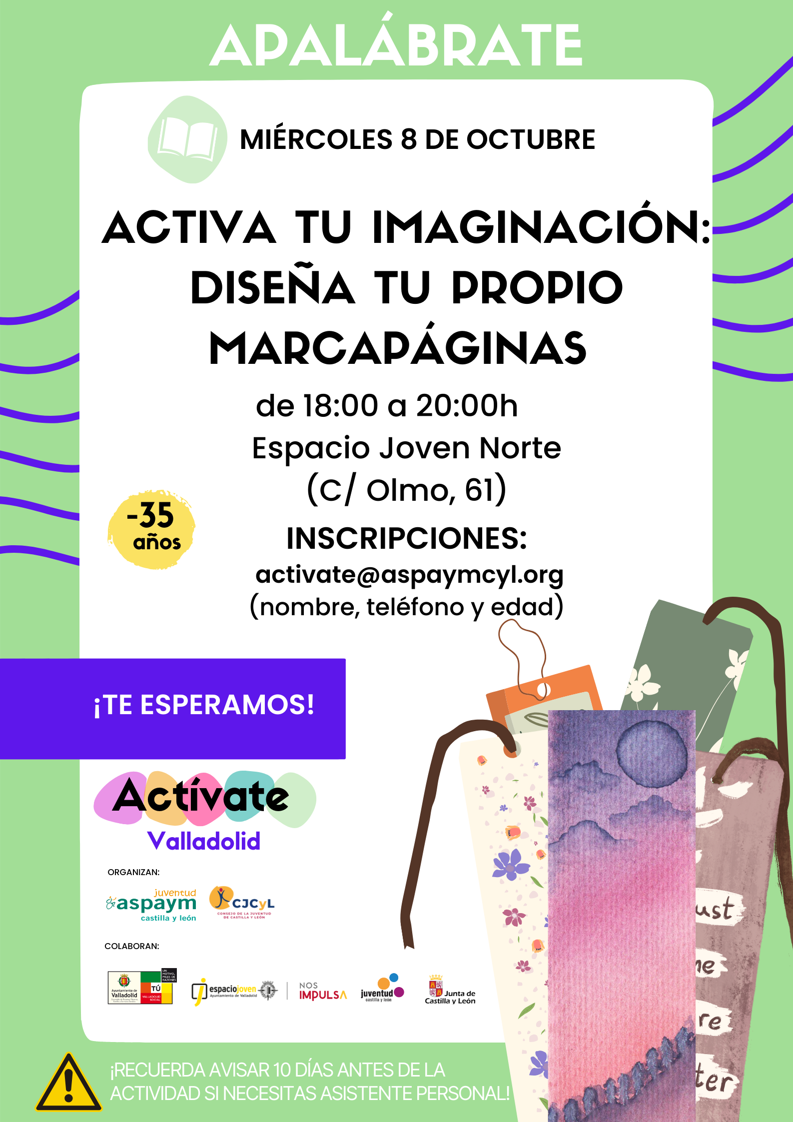 ACTIVA TU IMAGINACIÓN: DISEÑA TU PROPIO MARCAPÁGINAS | Miércoles 8 de octubre, de 18:00 a 20:00 horas | Espacio Joven Norte.